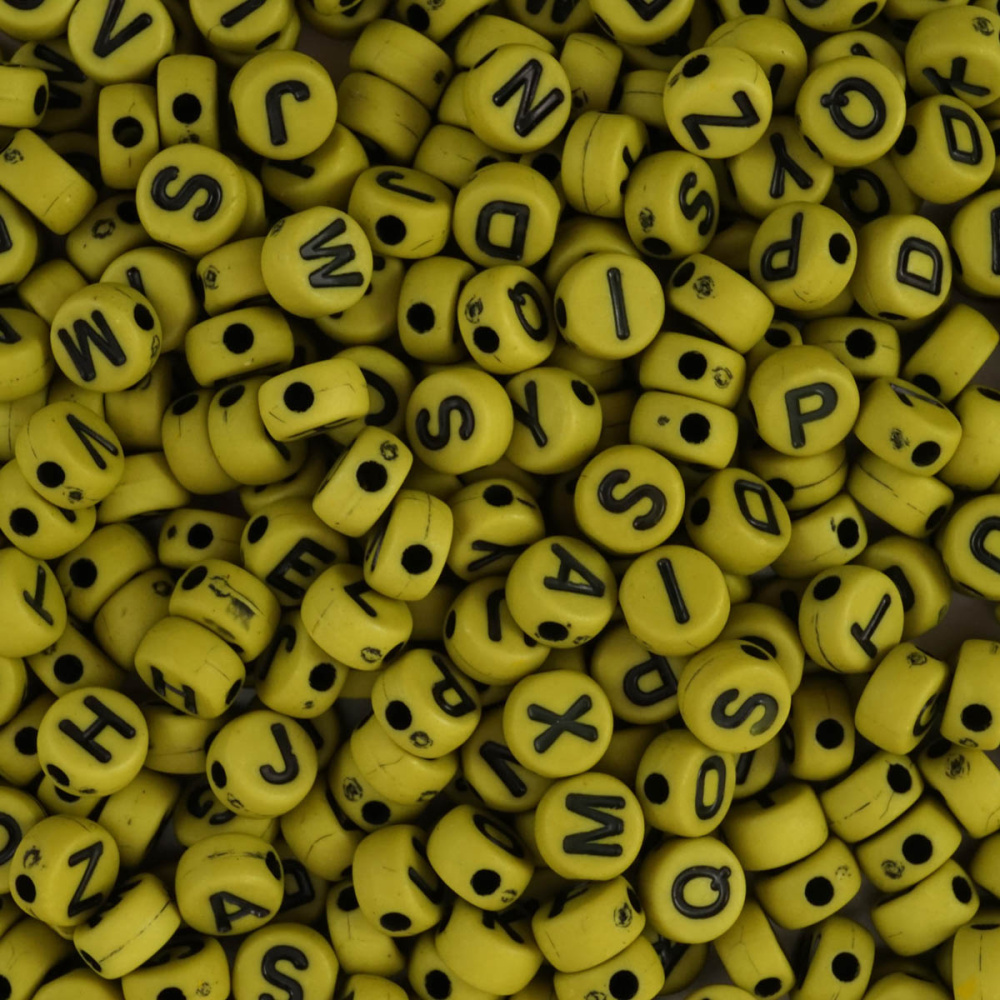 Бусины акрил "Английский алфавит" 7*4мм арт.8515 св.хаки (400±5шт)