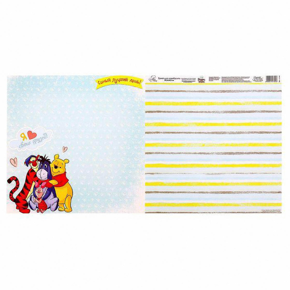 Бумага двусторонняя 29,5*29,5см "Медвежонок Винни и его друзья. Друзья" 160гр/м арт.1251654