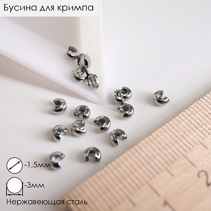 Бусина для кримпа d-3мм арт.ИВ-296 никель (нержавеющая сталь)
