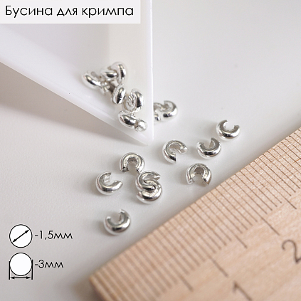 Бусина для кримпа d-3мм отв.1,5мм арт.ИВ-297 серебро