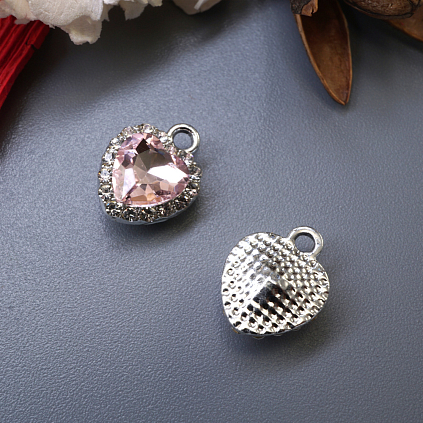 Подвеска со стразами "Сердечко" 11*14мм арт.308-255 серебро/роз