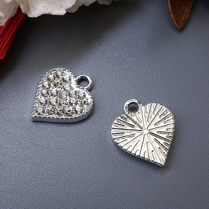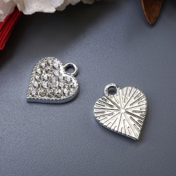 Подвеска со стразами "Сердечко №2" 13*15мм арт.308-242 серебро
