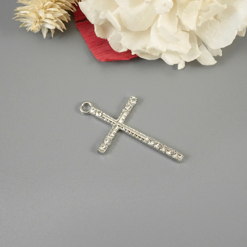 Подвеска "Крест" со стразами 20*32мм арт.ИВ-45 серебро