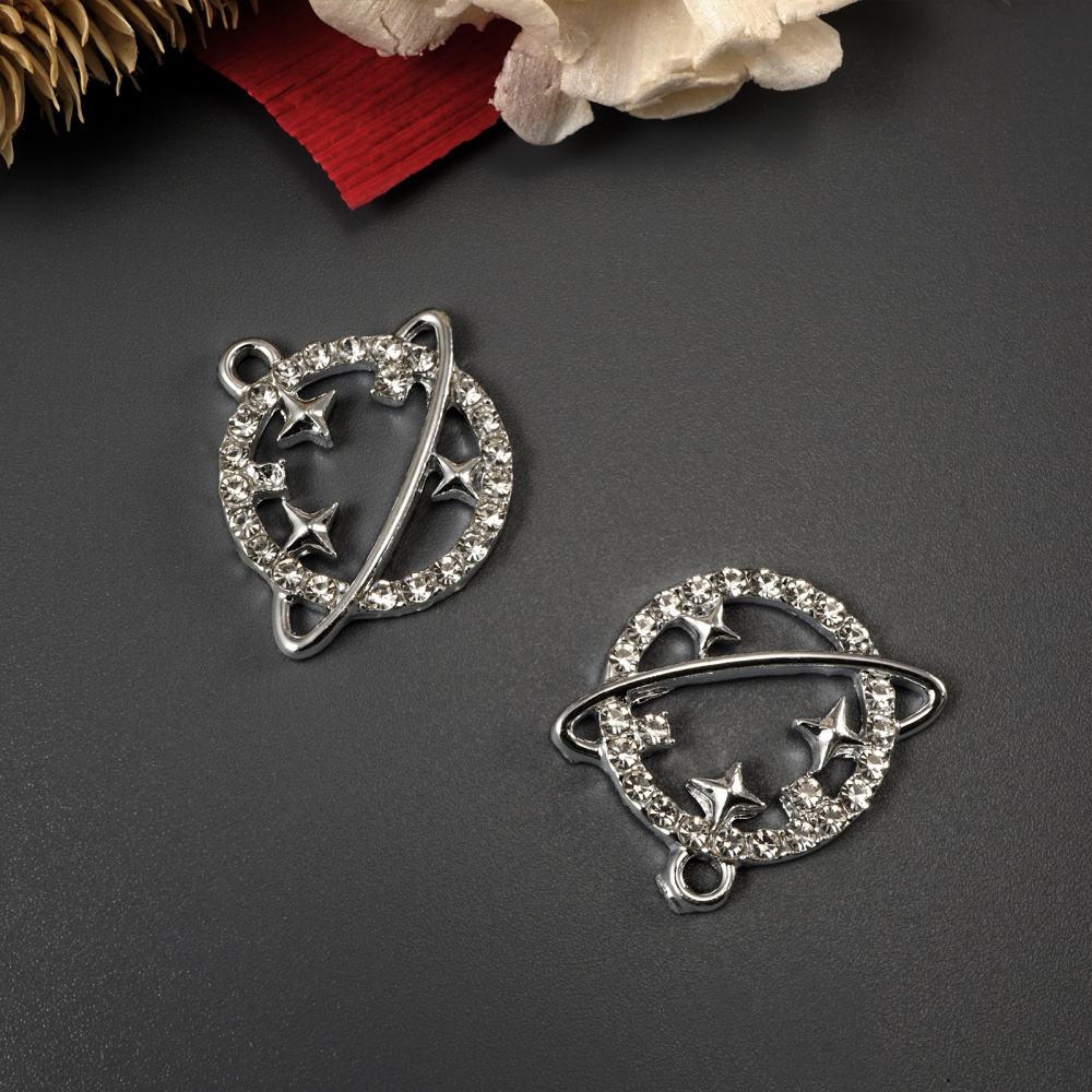 Подвеска "Космос" со стразами 23*20мм арт.ИВ-378 серебро