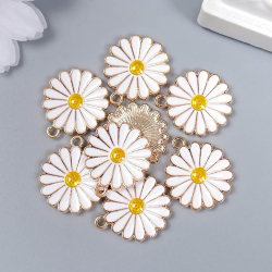 Подвеска "Ромашка" 20*18мм арт.7356023 золото/белый
