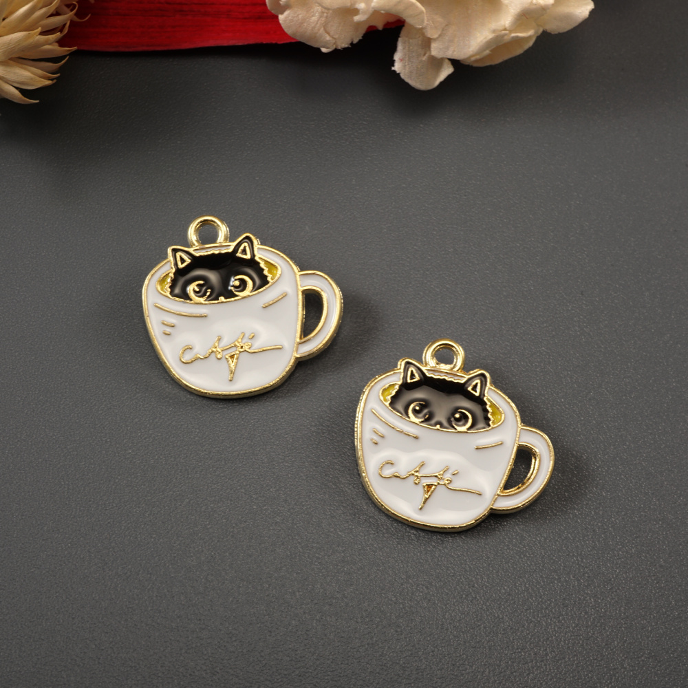 Подвеска "Котик в чашке" 20*19мм эмаль арт.ИВ-369 черный/белый/золото