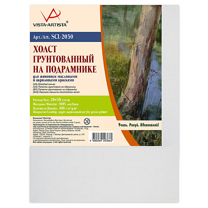 Холст грунтованный на подрамнике 100% лен 20*30см 400г/кв.м арт.SCL-2030 мелкозернистый