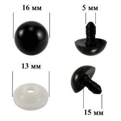 Глаза круглые винтовые 16*18*5/13мм арт.ФУ-10937 черный