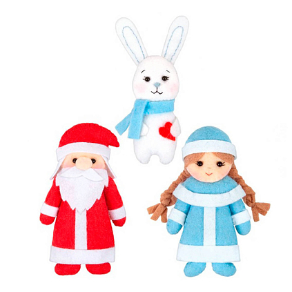 В набор входят: фетр, хлопчатобумажные нитки мулине Gamma, шерсть для валяния, синтепон, швейная игла, выкройка, подробная инструкция с картинками. Фетровые игрушки можно использовать для украшения новогодней елки, а также в качестве брелока/броши.