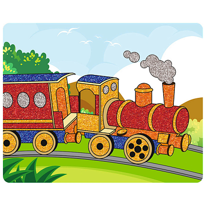 Картонная основа с нанесенным рисунком, цветные блестки, деревянная палочка.