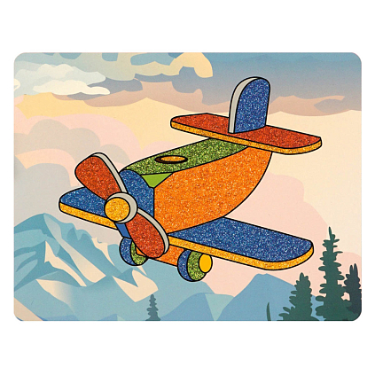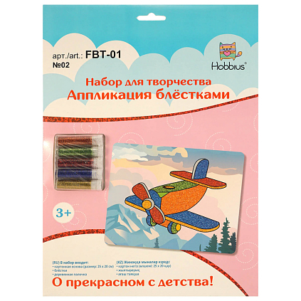 В наборе: - картонная основа с нанесенным рисунком - цветные блестки - деревянная палочка