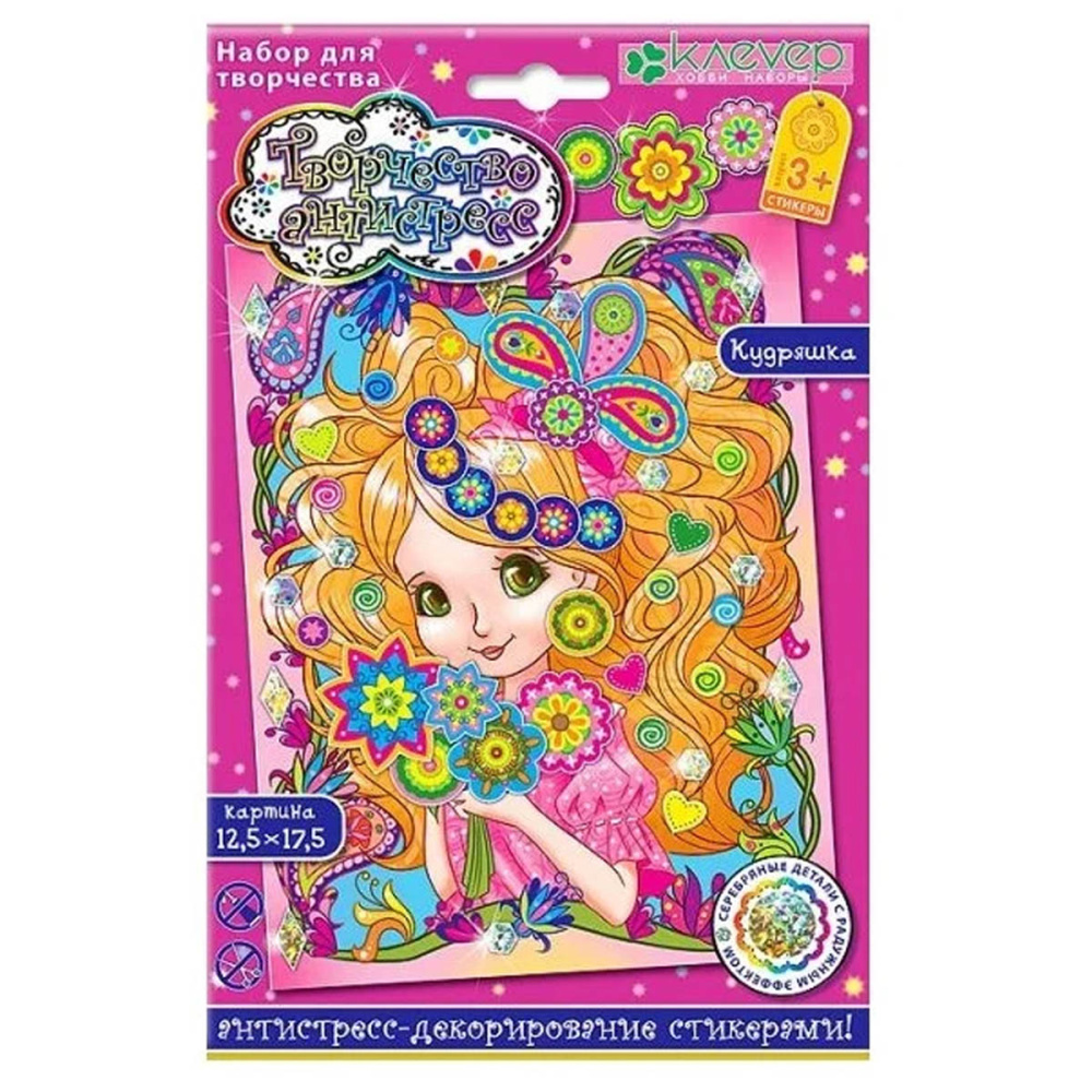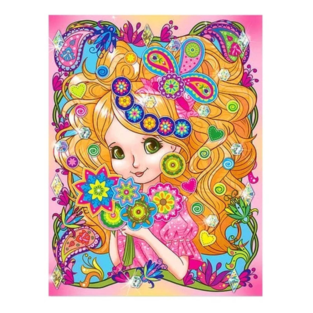 В наборе: основа с нанесенным изображением, цветные стикеры для декорирования с радужным эффектом.