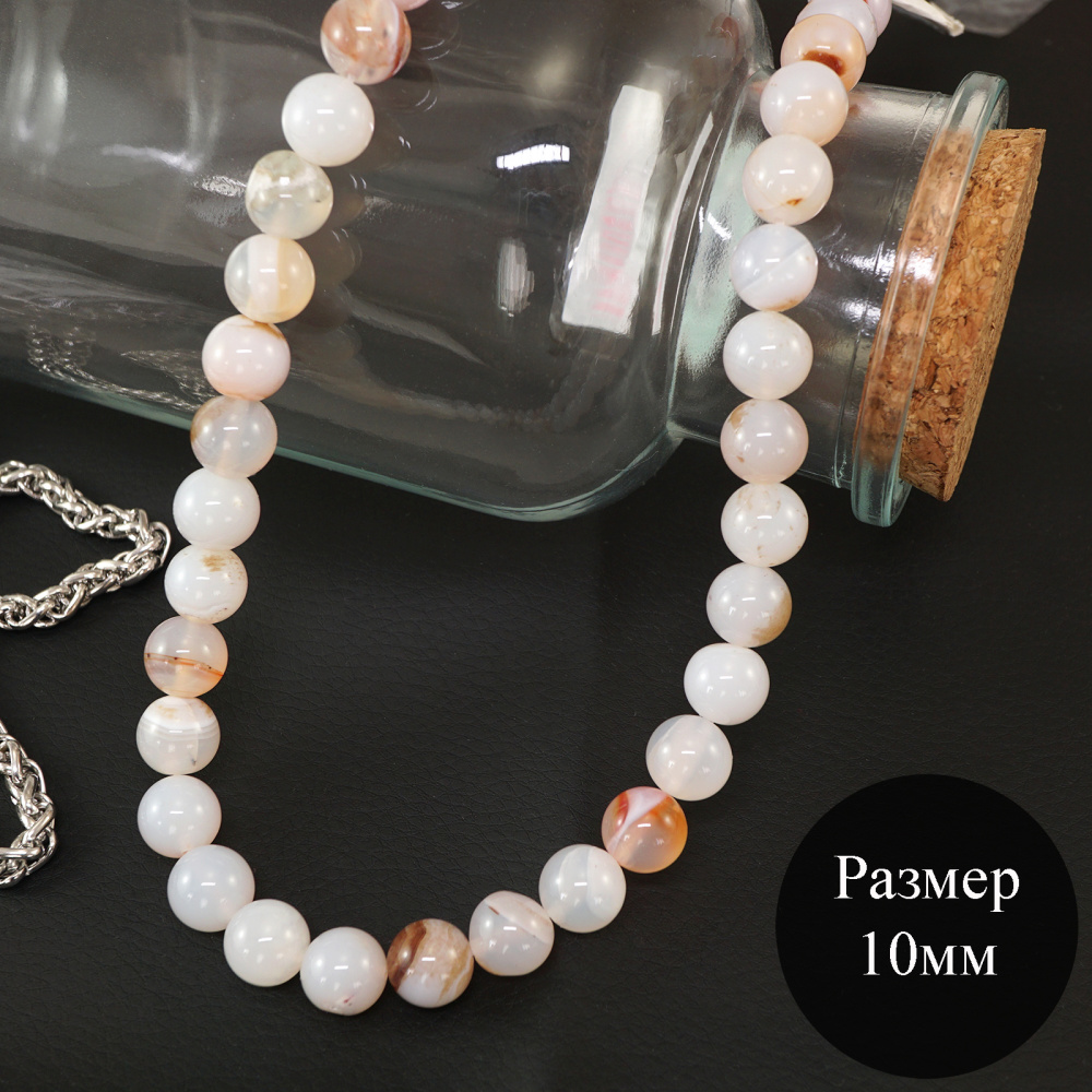 Бусины "Агат" 10мм 37см арт.SF-7592 бежевый микс-99 (40бусин)