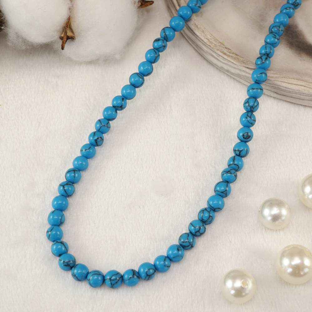 Бусины "Бирюза" 6мм 40см арт.ФУ-11932 т.бирюзовый (65бусин)