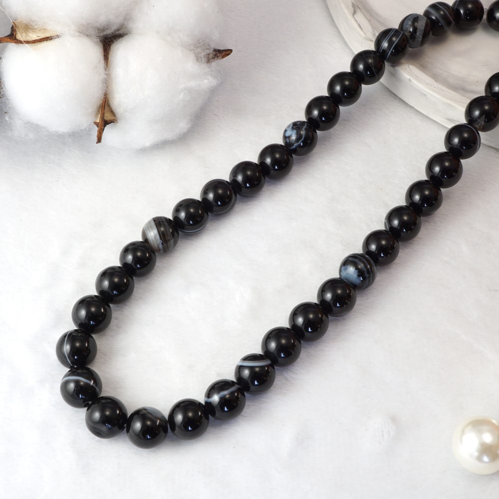 Бусины "Агат" 10мм 36см арт.ФУ-11922 черный/серый (36шт)