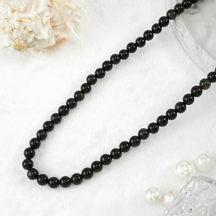 Бусины "Обсидиан" 6мм 38см арт.12291 черно-золотистый (62бусины)