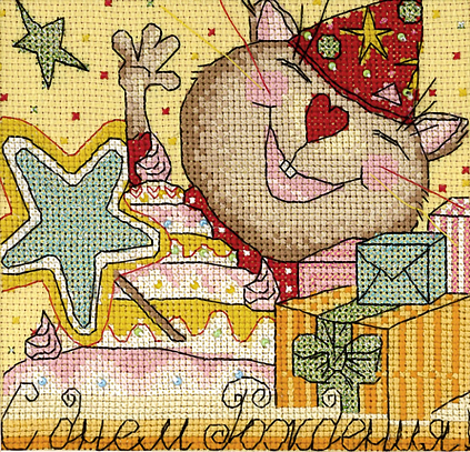 PANNA арт.ОТ-1373 "С днем рождения" Набор для вышивания мулине 15*14,5см