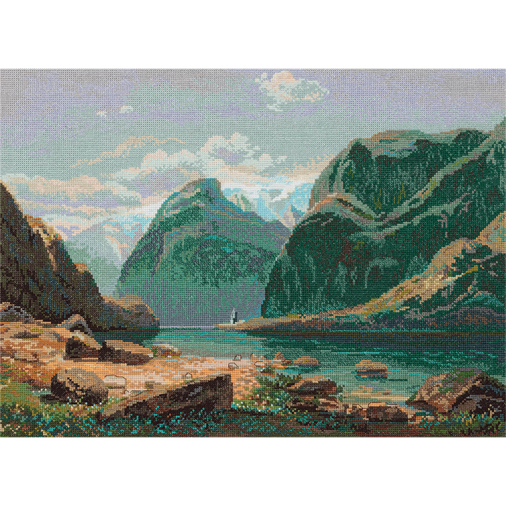 "Золотая серия" GTG/ГДГ-7097 "Озеро в горах Швейцарии" Набор для вышивания мулине 35*24см