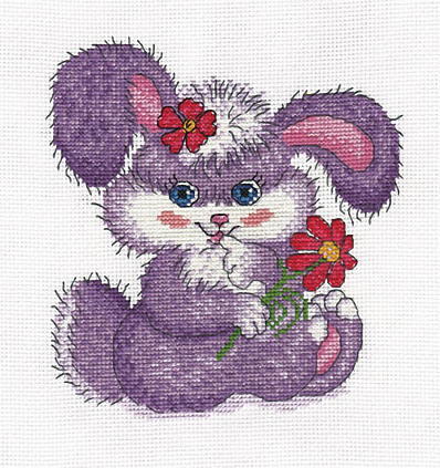 8-135 "Зайки с красным цветком" Набор для вышивания мулине "Кларт" 20*20см