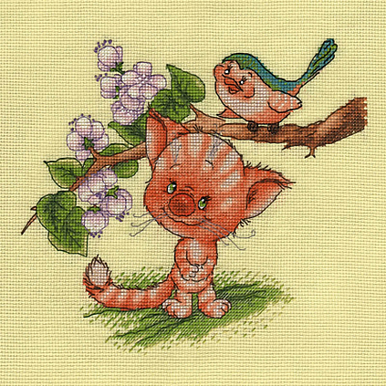 8-194 "Кот и птица" Набор для вышивания мулине "Кларт" 24*24см