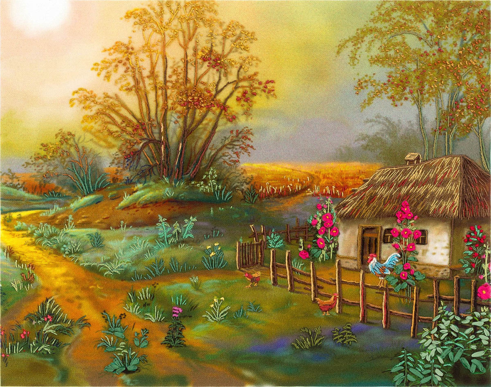 PANNA "Живая картина" JK/ЖК-2017 "Утро в деревне" Набор для вышивания мулине и лентами 24*18см