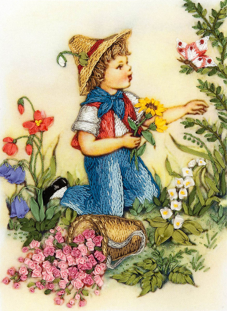 PANNA арт.ЖК-2004 "В палисаднике" Набор для вышивания мулине и лентами 11,5*15,5см
