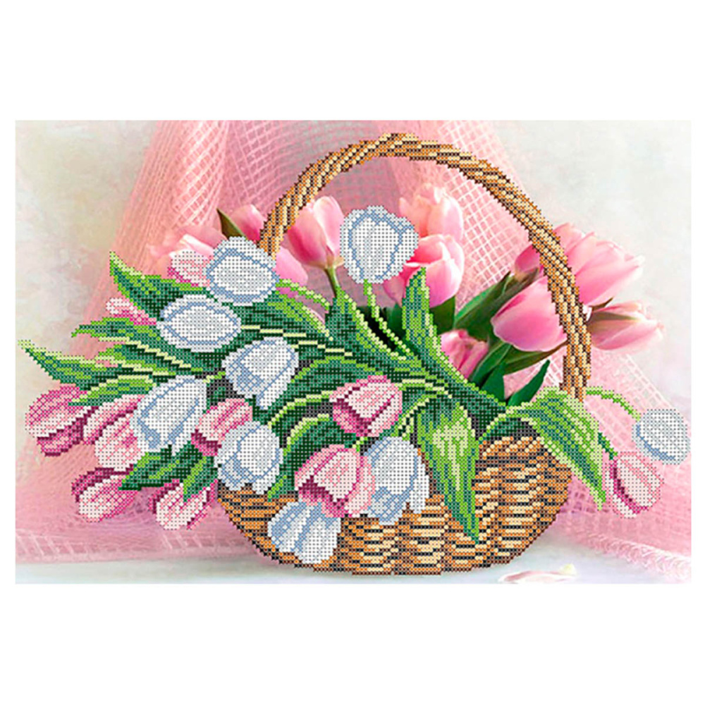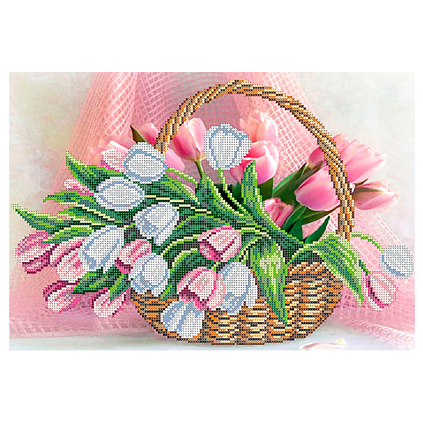 4099 "Тюльпаны в корзине" Рисунок на шелке бисером "Матренин Посад" 37*49см