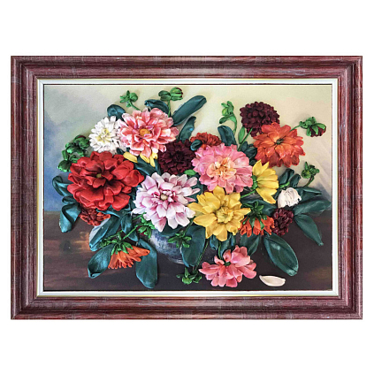 КЛ-3009(н) "Георгины" Набор для вышивания лентами "Каролинка" 27,2*35,2см