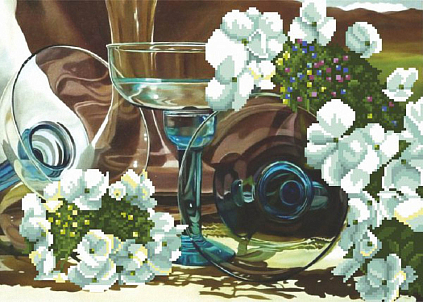 Г-038 "Бокалы в белых цветах" Рисунок на ткани "М.П.Студия" 50*40см