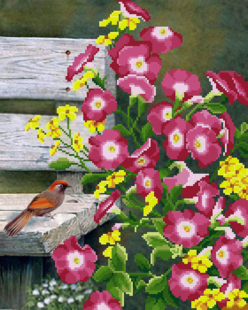 Г-019 "Птица на скамье" Рисунок на ткани "М.П.Студия" 50*40см